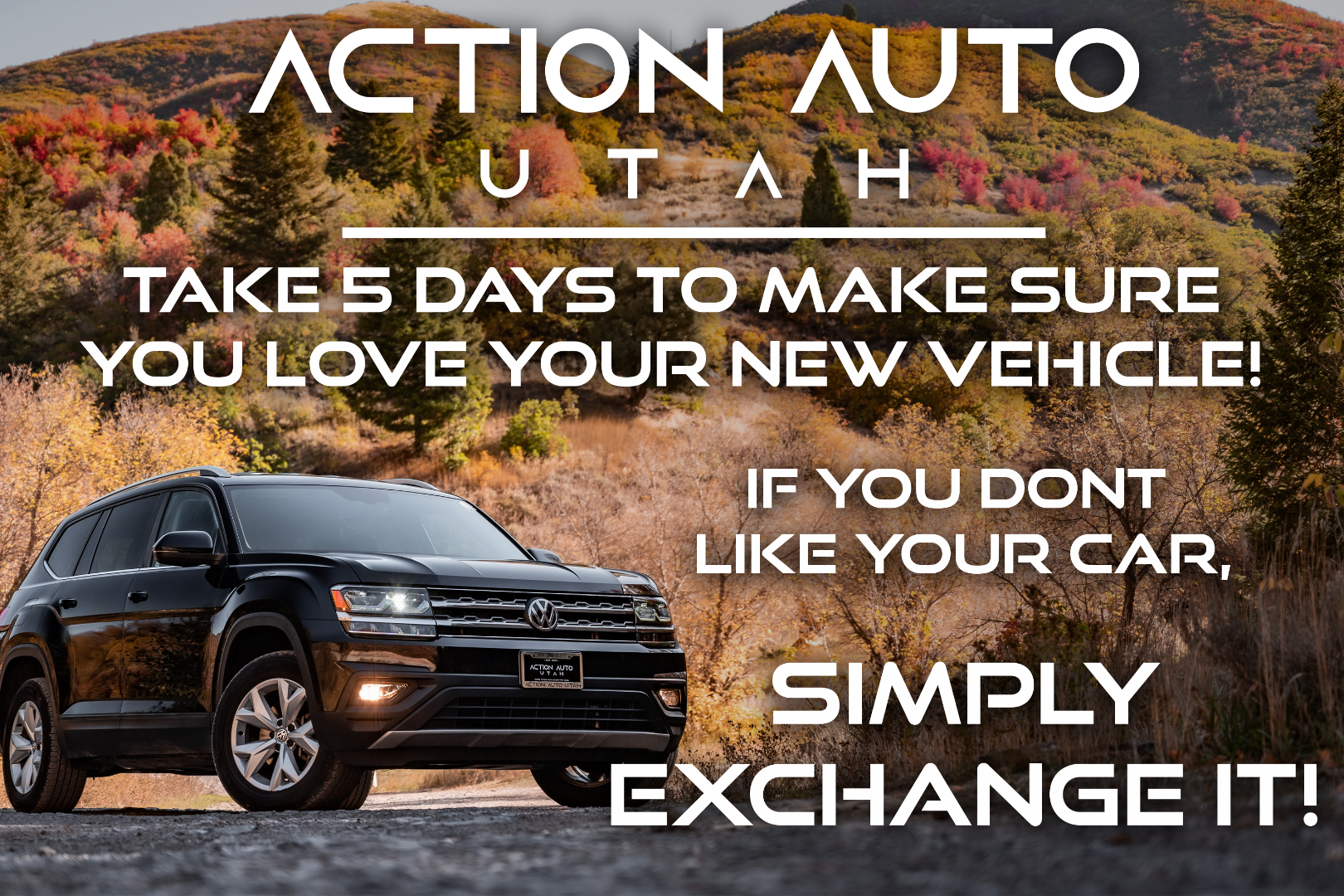 4. *Peace of Mind:* At Action Auto Utah, we prioritize your peace of mind. We offer multi-point inspections, service contracts, and a complimentary 5-day exchange policy to provide you with confidence in your purchase. Please note, our 5-day exchange policy does NOT apply to performance vehicles or vehicles that have mechanical issues after the sale.